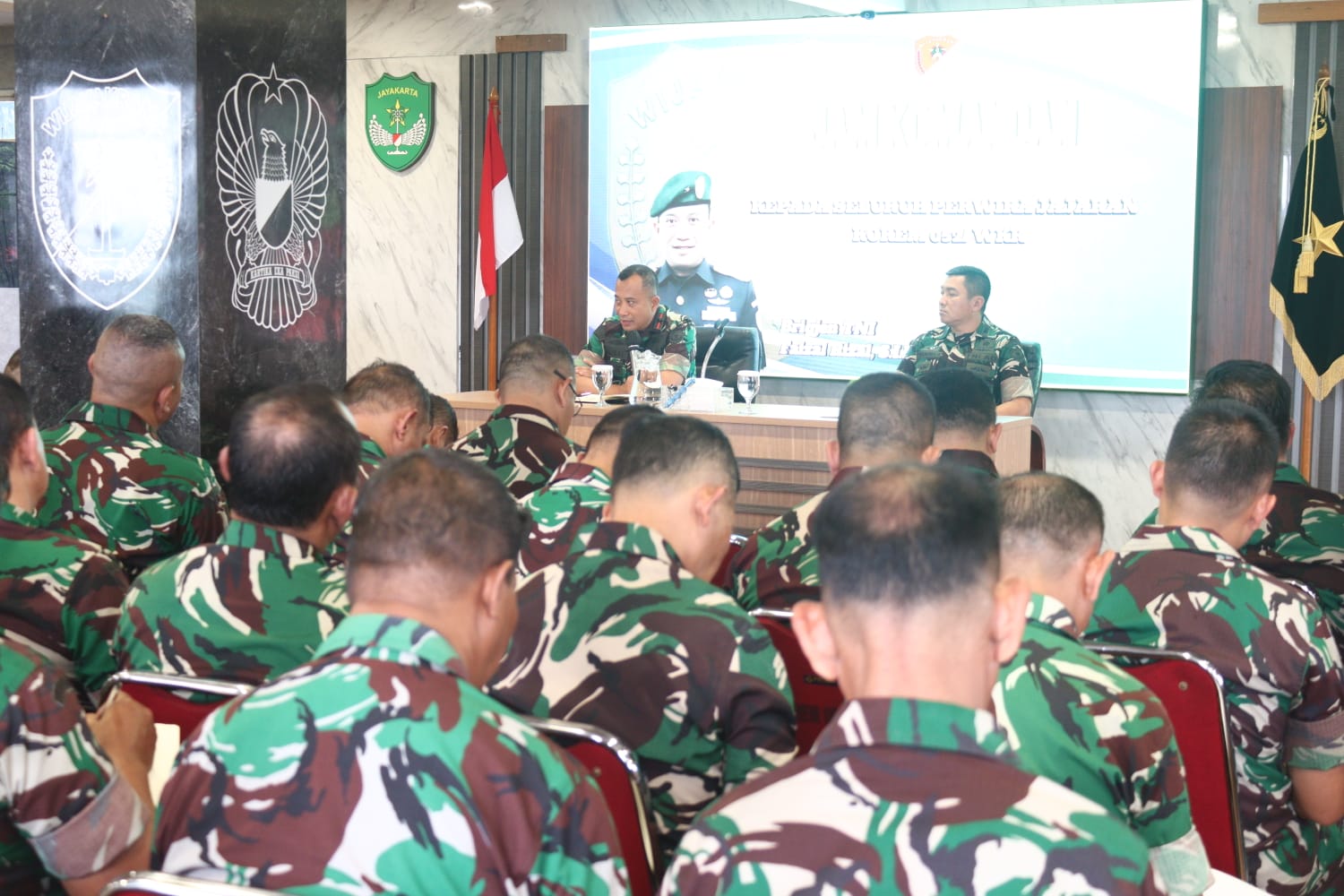 Kegiatan tersebut diikuti oleh Kasrem 052/Wkr, para Kasi Korem, para Dandim, Pasi, serta Danramil jajaran Korem 052/Wkr. Dalam arahannya, Danrem menyampaikan beberapa penekanan penting sebagai pedoman bagi seluruh prajurit dalam melaksanakan tugas dan kehidupan sehari-hari.