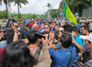 “Sekai lagi tuntutannya masih sama, minta kepada Bupati Tangerang segera Cabut SE Disnaker. Copot dan tangkap Kadisnaker Kabupaten Tangerang dan Kepala Bidang HI Kabupaten Tangerang yang sudah membuat kegaduhan di Kabupaten Tangerang,” tegasnya. (Luk/red)