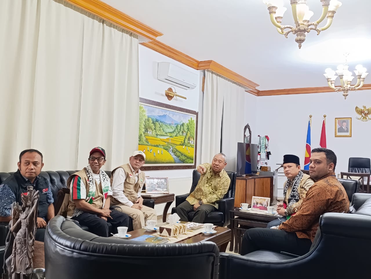 Pertemuan berlangsung hangat sekaligus penuh makna. Selain membahas teknis penyaluran, Dubes juga menekankan pentingnya memastikan bantuan tepat sasaran, aman, dan sesuai prosedur diplomatik yang berlaku di kawasan konflik.