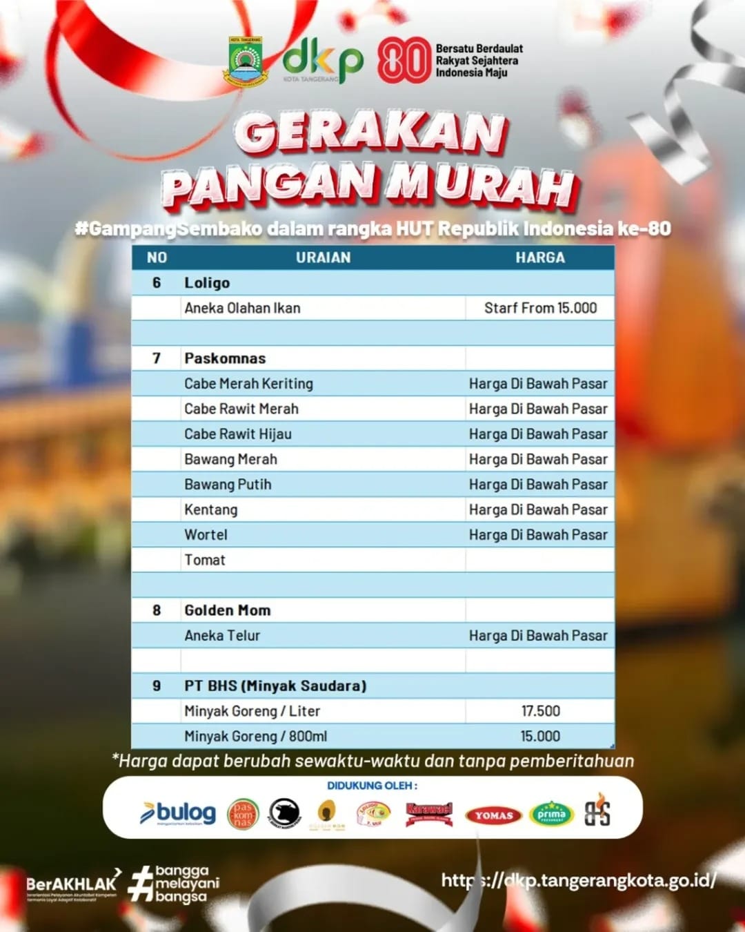 “Ayo, datang dan manfaatkan Gerakan Pangan Murah di 13 kecamatan. Penuhi kebutuhan dapur dengan harga pangan yang terjangkau,” tambahnya.