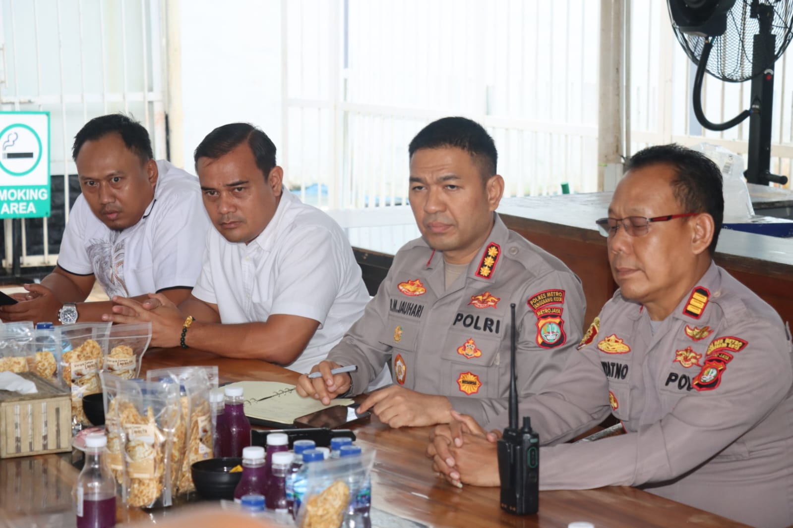 “Pertama-tama marilah kita panjatkan puji syukur ke hadirat Allah SWT. Saya merasa terhormat dapat hadir di sini. Semoga silaturahmi ini menjadi momentum memperkuat kerja sama kita dalam menjaga keamanan dan ketertiban di Kota Tangerang,” ujarnya.