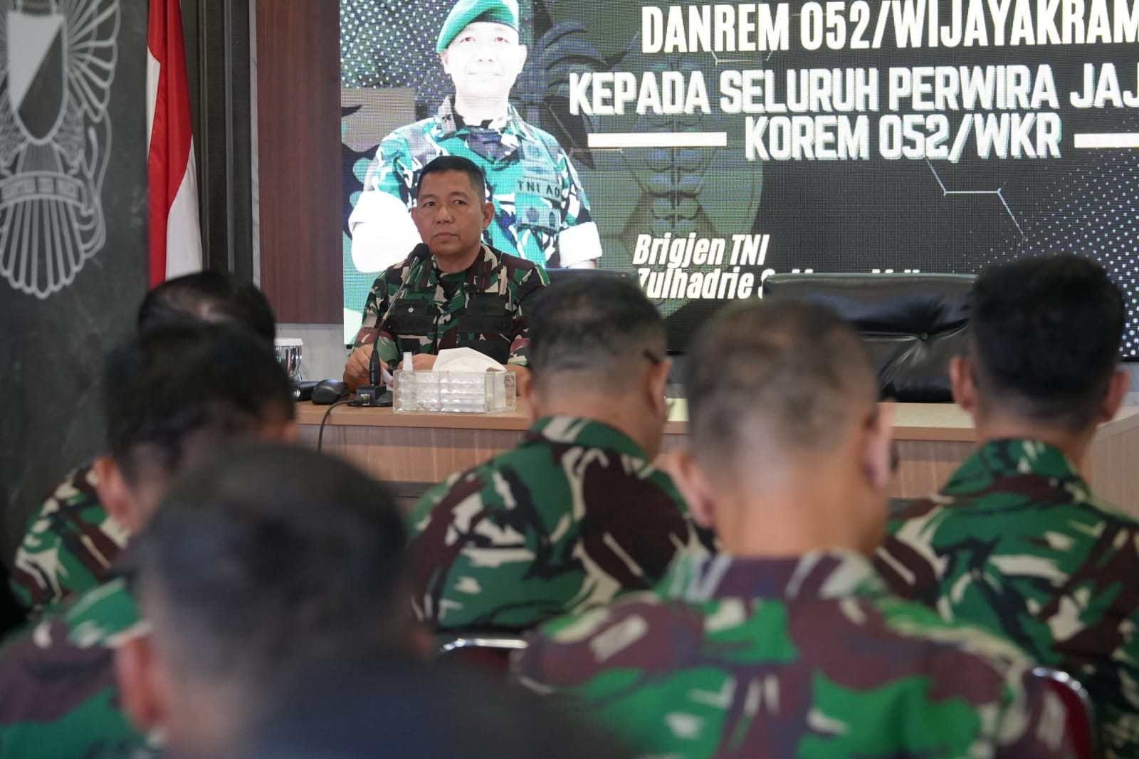 Tangerangkini.com, Tangerang – Selesai melaksanakan upacara 17 an bulan Juni 2025, Danrem 052/Wijayakrama Brigjen TNI Zulhadrie S. Mara, M.Han., memberikan Jam Komandan kepada seluruh Perwira ja...
