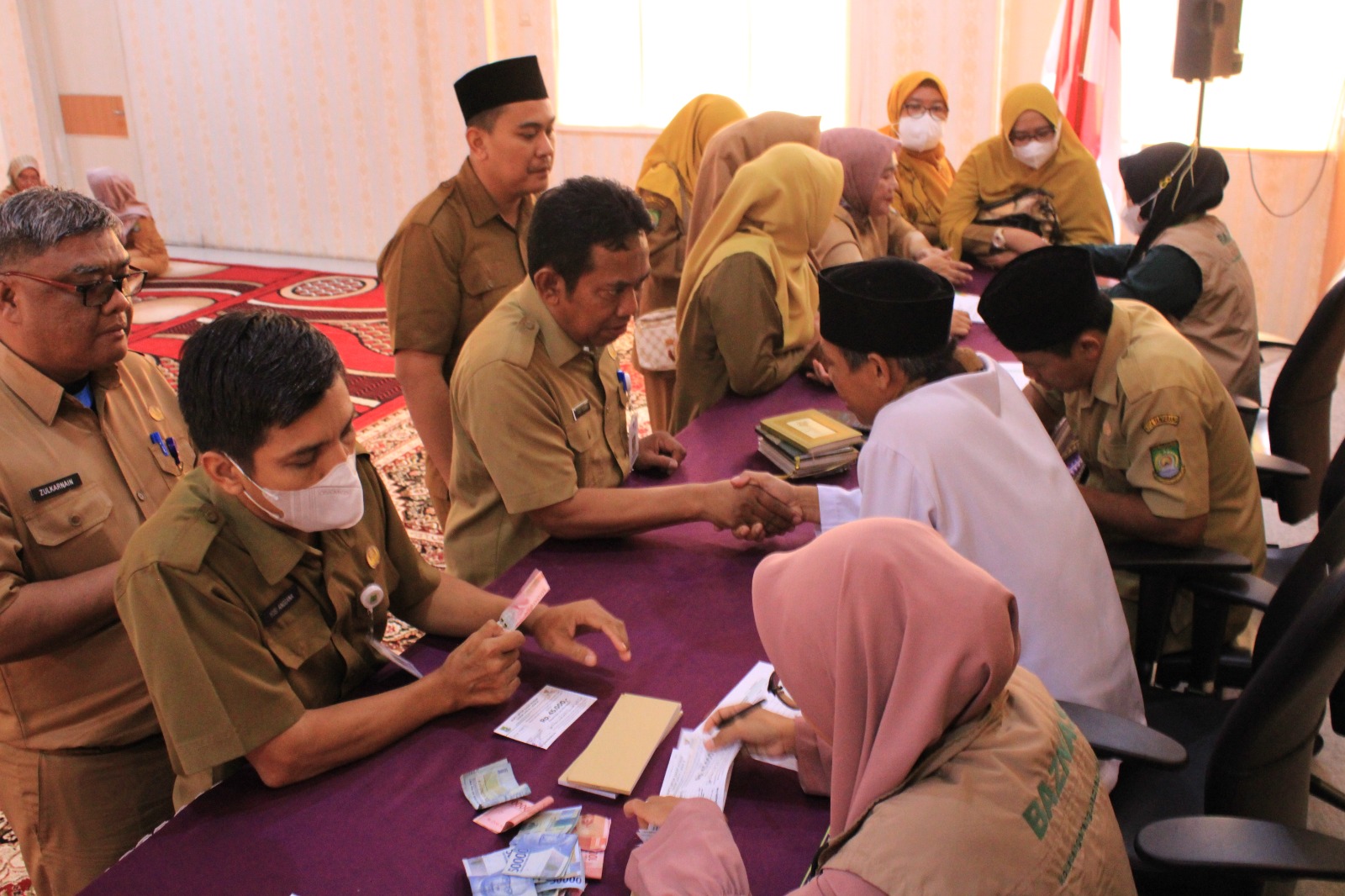 Pegawai Kecamatan Cibodas Serentak Bayar Zakat dan Beri Bantuan kepada Guru Ngaji dan Marbot
