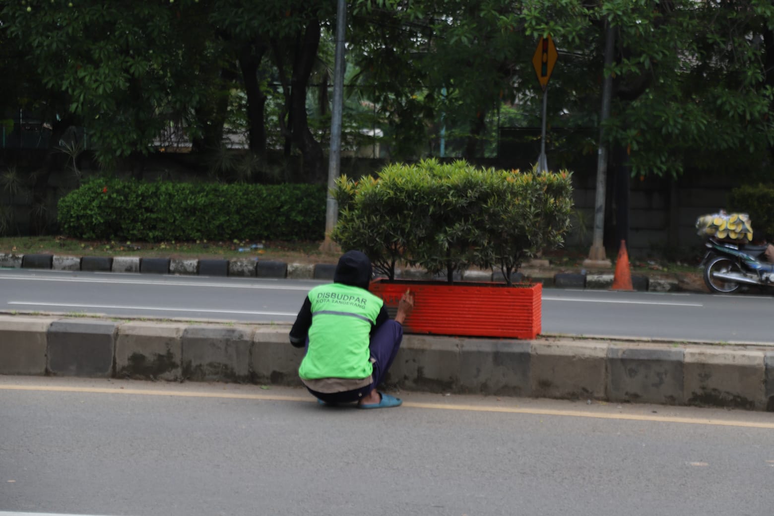 Kepala Bidang Pertamanan Disbudpar Kota Tangerang Teguh Heriyadi menyatakan, kegiatan ini merupakan bagian dari program rutin pemeliharaan infrastruktur kota yang bertujuan untuk menciptakan lingkungan yang bersih, rapi, dan tertata.