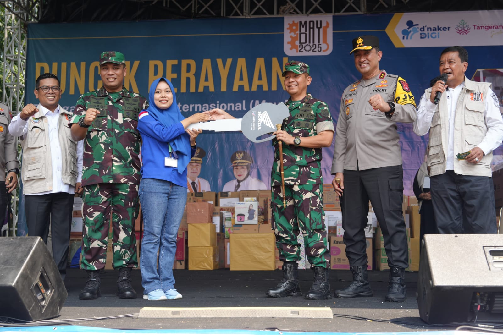 Tangerangkini.com, Tangerang – Komandan Korem 052/Wijayakrama, Brigjen TNI Zulhadrie S.Mara, M.Han., turut hadir dalam acara puncak perayaan Hari Buruh Internasional (May Day) tahun 2025 tingkat Kabupaten Tangerang. Acara dipusatkan di Puspem Kab. Tangerang, Tigaraksa. Kamis (1/5/2025).