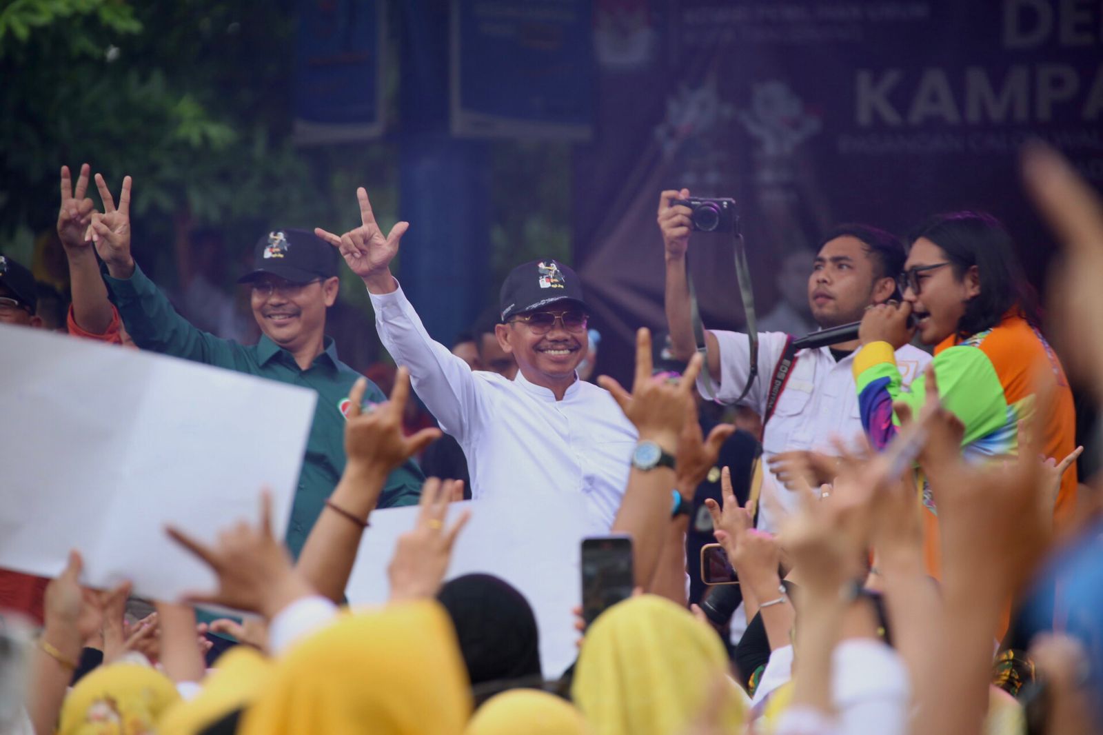 Ratusan masa pendukung SAMA dari berbagai jaringan dan relawan datang memenuhi alun-alun Ahmad Yani, Kota Tangerang berbaur bersama dengan massa dari dua paslon lain yakni Faldo-Fadlin dan Amarullah-Bonnie.
