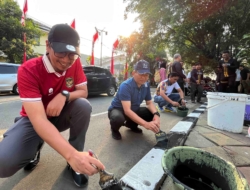Tangerangkini.com,Kota Tangerang- Dalam rangka menyambut Hari Ulang Tahun (HUT) Kemerdekaan Republik Indonesia (RI) ke-79, Sekretaris Daerah Kota Tangerang, Herman Suwarman, bersama para pegawai di Lingkungan Pemerintah Kota (Pemkot) Tangerang membagikan bendera merah putih kepada seluruh masyarakat, sekaligus melakukan pengecatan kanstin di sejumlah ruas trotoar.